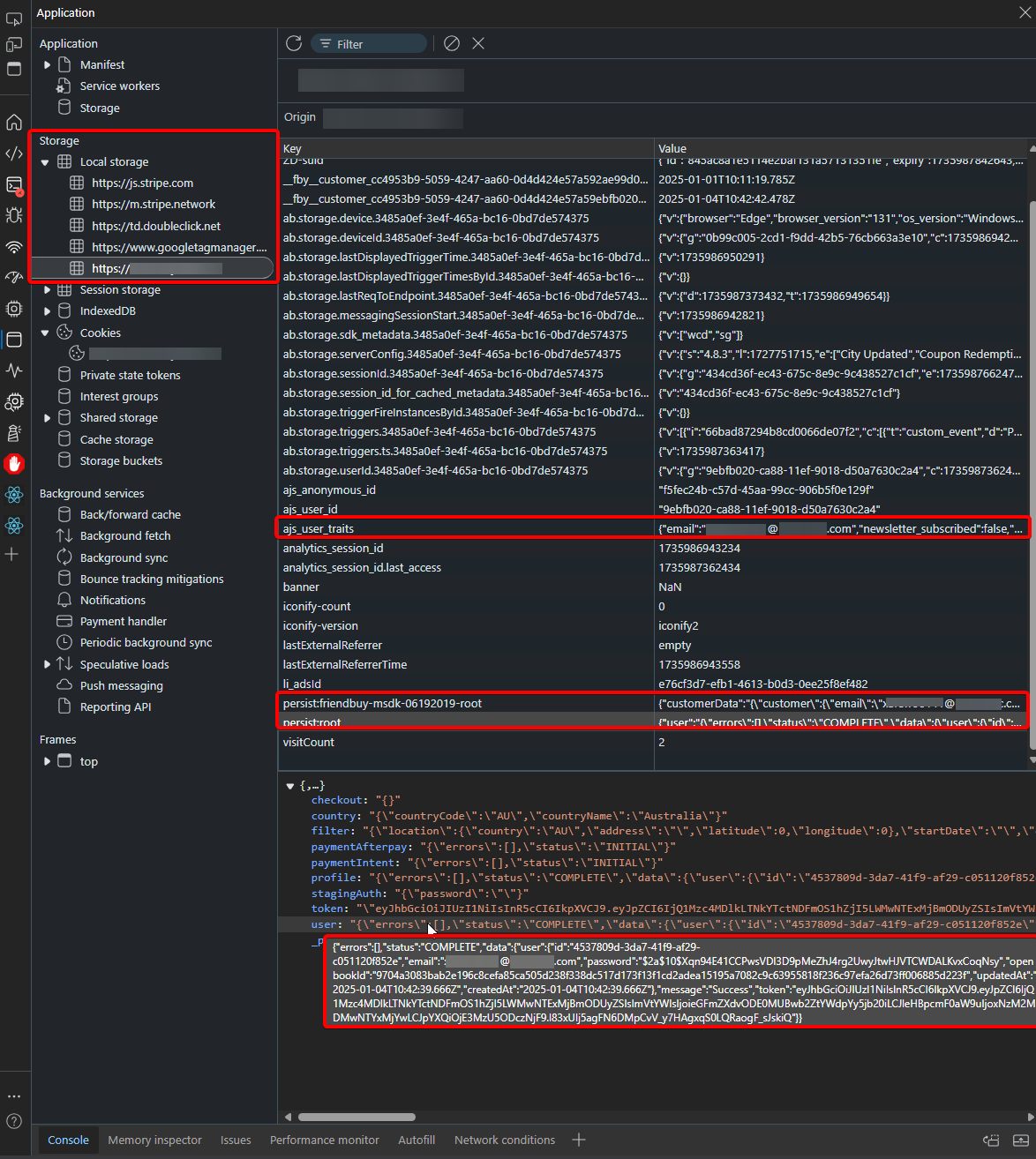 Recently, we were browsing an accommodation website, because the website had somewhat of sleek and fast interface, it prompted me to open the dev tools to take a peak at what they used to build the site. Completely out of curiosity, nothing nefarious, really. I clicked over to the "Network" tab, nothing too interesting... "Application" tab, oh yeah ReactJS and an Express backend... I had a peak at "Storage," and started looking at the Local Storage entries.